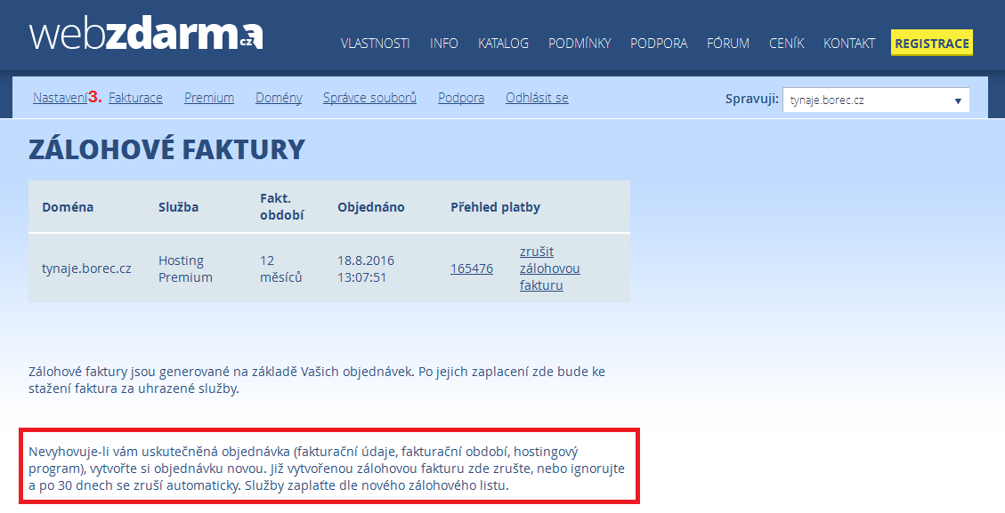 Až se Vám vystaví nový doklad na další období, bude již na vámi vyplněné fakturační údaje.